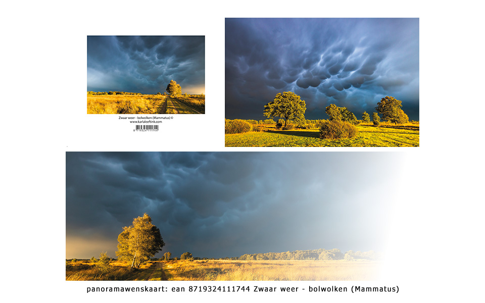 74 ean 8719324111744 Zwaar weer – bolwolken 2020/03/112020/03/11 | karlaleeftink Een zware bui met prachtige bolwolken (Mammatus) trekt over Nederland en de zon schijnt er aan het eind van de dag net even fel onderdoor over het landschap.