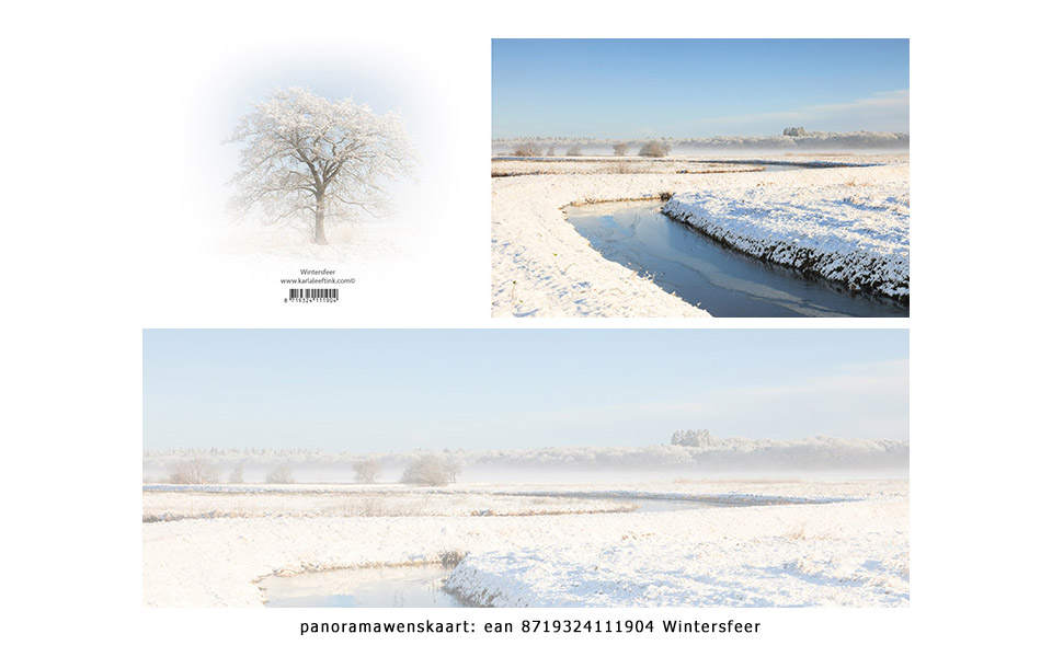 90 ean 8719324111904 Wintersfeer 2021/03/092021/03/09 | karlaleeftink Besneeuwde beek met op de achtergrond het Noordlaarderbos. Binnenin half transparant een sneeuw panorama van hetzelfde landschap.