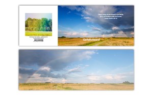 40 Dubbele A6 kaart met afbeelding van een regenboog met voorop de tekst: ‘Heer, hoog als de hemel is uw liefde. Tot in de wolken reikt uw trouw.’ (naar Psalm 36:6) en met Gefeliciteerd