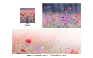 ean 8719324111966 Klaprozen 2023/04/042024/07/10 | karlaleeftink Op de voorkant staat een bloemenveld waar twee heldere klaprozen boven uitsteken. De goed beschrijfbare binnenkant heeft een tranparant bloemenveld. Achterop staan paars bloeiende lupines die voor het hetzelfde veld staan.